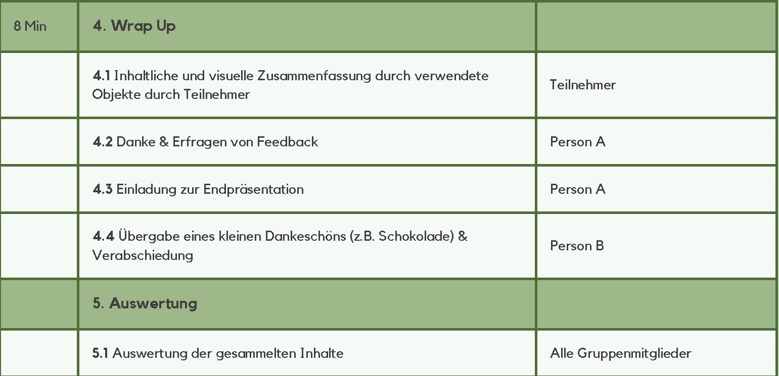 Um unterschiedliche Perspektiven in die Konzeptentwicklung einzubeziehen, wurden drei qualitative Einzelinterviews mit einer Dauer von jeweils ca. 40 Minuten geplant. Dafür wurde ein Interviewleitfaden erstellt, der relevante Themen wie Stress, Erholung, Naturwahrnehmung und Nutzungshürden abdeckte.