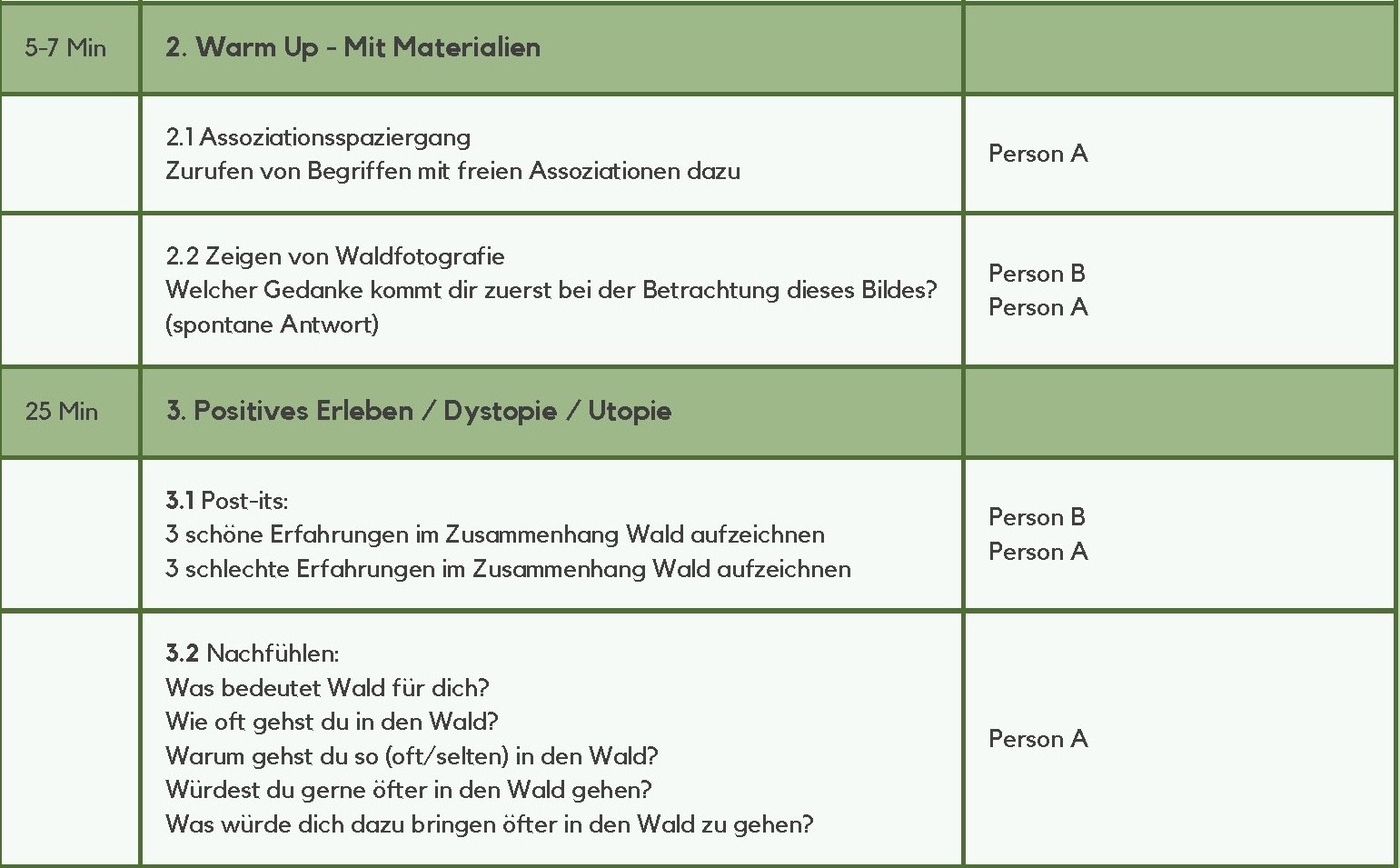 Im Zentrum stand die Frage, wie das Bewusstsein für den Wald als Rückzugsort gestärkt und welche Strategien entwickelt werden können, um diese Zielgruppe aktiv in den Wald zu bringen.