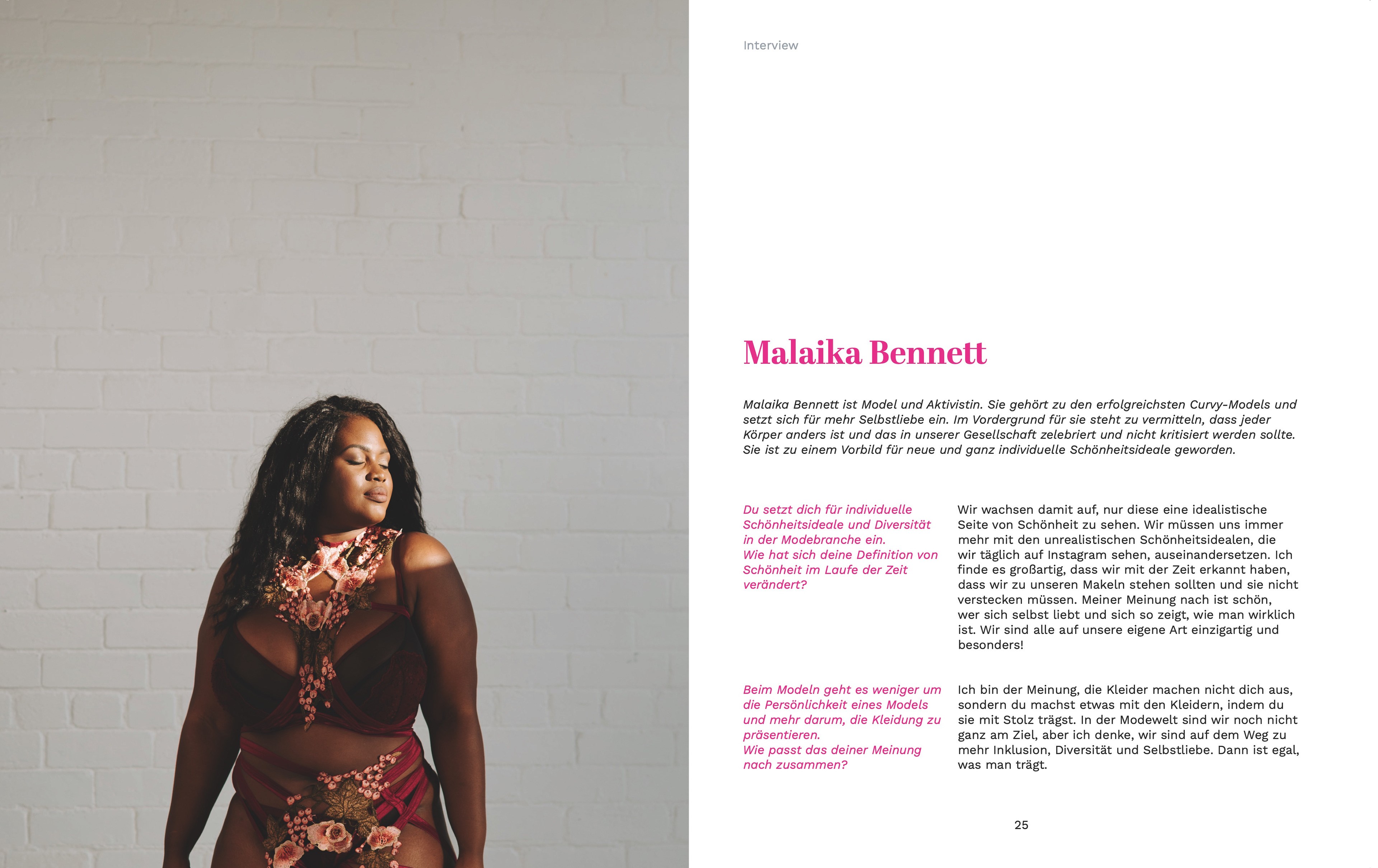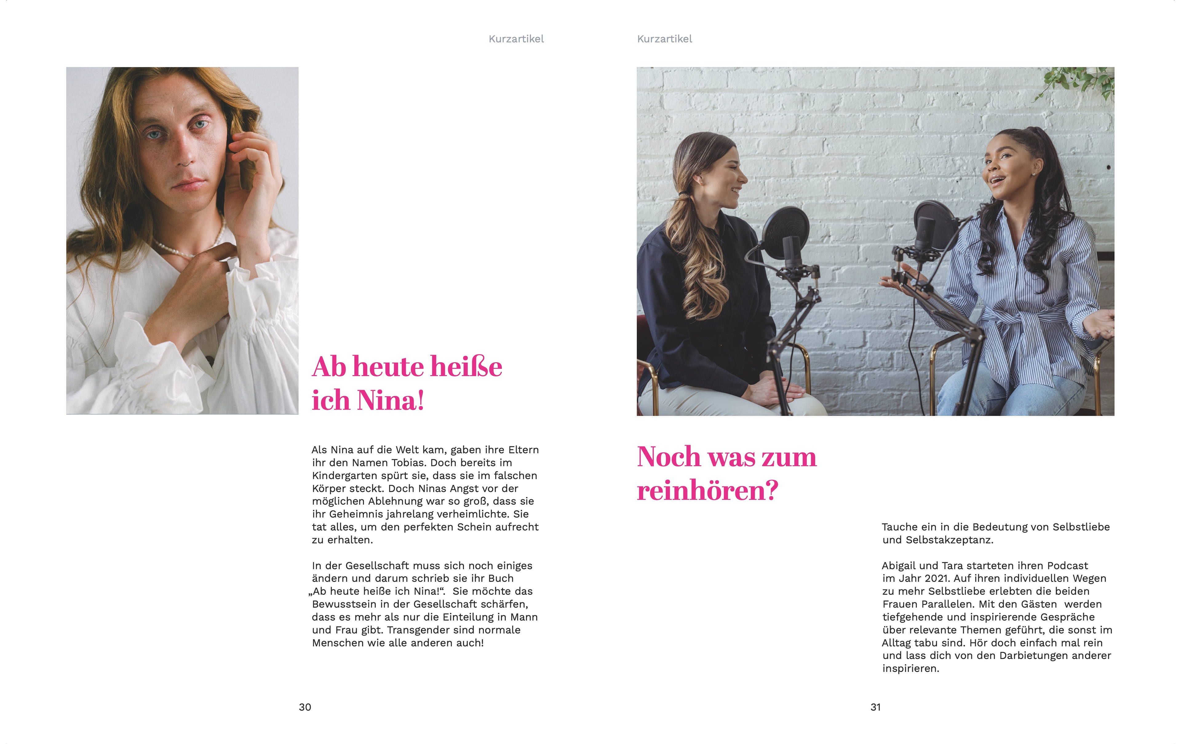 Ich entschied mich für das Märchen „Das hässliche Entlein“ und nutzte es als Grundlage, um die Themen Bodyshaming und Bodypositivity aufzugreifen. Ziel war es, ein Magazin zu gestalten, das das Thema sensibel, aber klar kommuniziert und sowohl inhaltlich als auch gestalterisch Haltung zeigt. Das Magazin umfasst unter anderem Titel- und Rückseite, Inhaltsverzeichnis, Titelstory, Infografik, Interview, Reportage, mehrere Kurzartikel sowie ein Impressum.