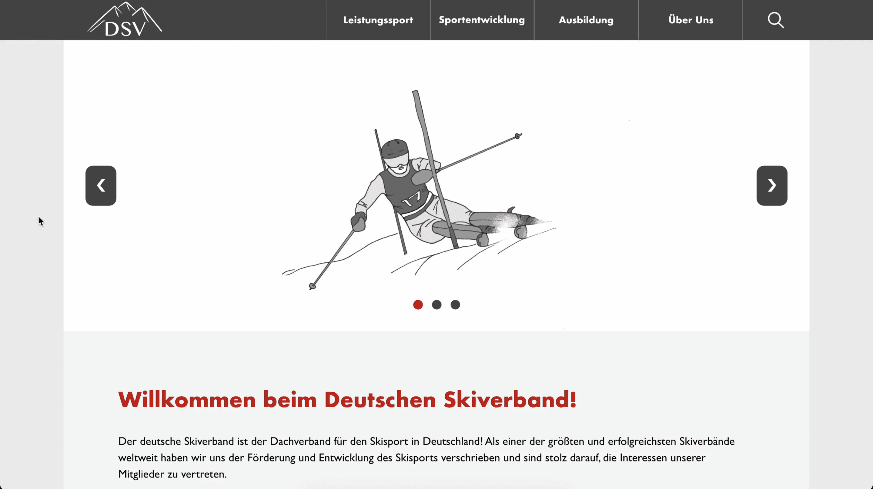 Da ich seit meiner Kindheit Ski fahre und mehrere Jahre im Skiclub Plochingen aktiv war entschied ich mich für die Website des Deutschen Skiverbands (DSV).